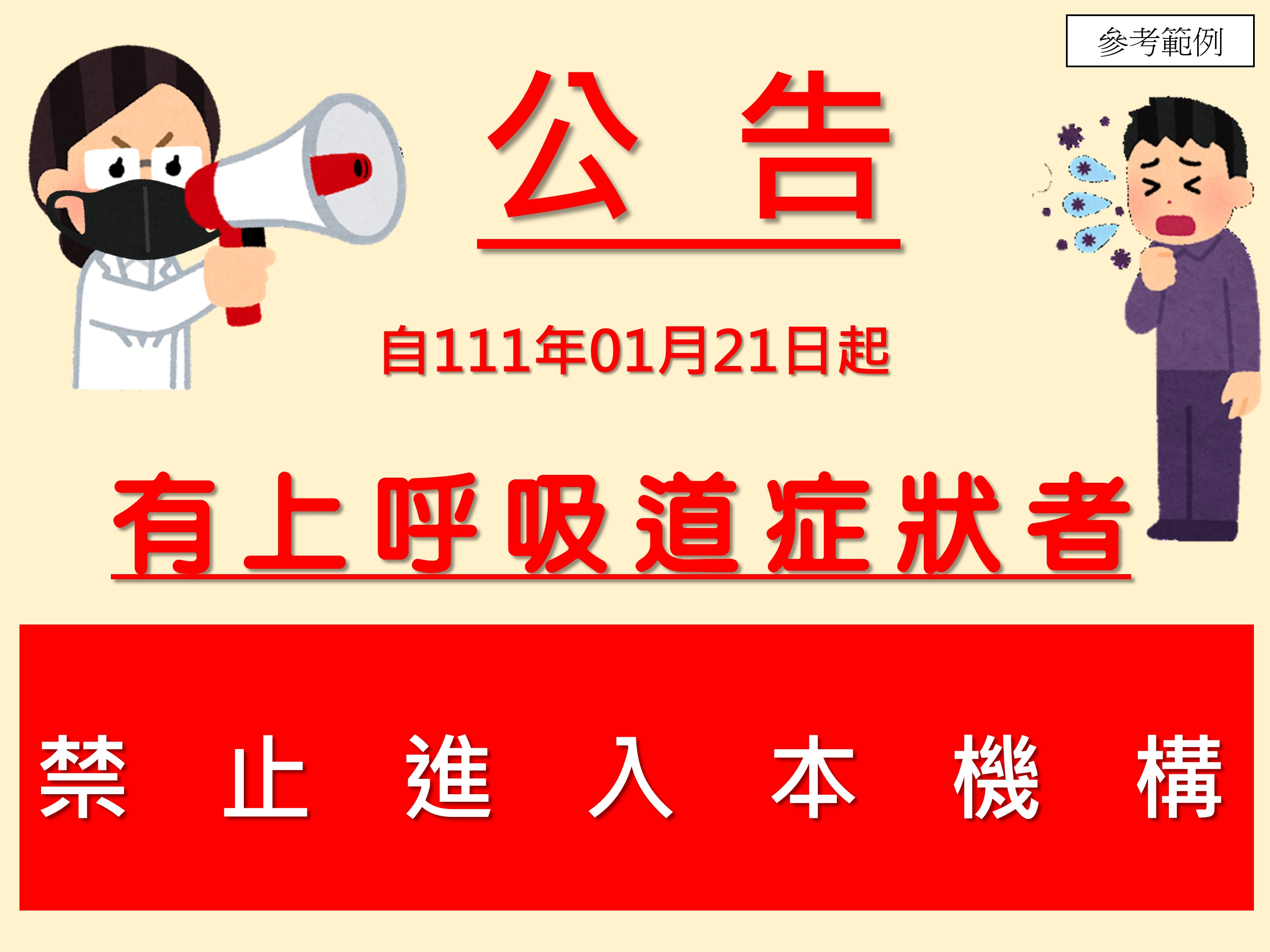 進入本機構仍需配合配戴口罩 ,婉拒上呼吸道症狀者入內